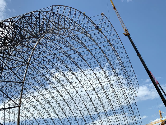 (2)网架加工前应对现场尺寸进行复测,确认无误后方可进行加工、安装;网架制作、运输、安装应遵守《空间网格结构技术规程》JGJ7-2010、《钢网架漯河螺栓球节点》JG/T 10-2009、《钢网架漯河螺栓球节点用高强度螺栓》 GB/T 16939-2016、《漯河钢结构漯河工程漯河施工规范》 GB50755-2012、《漯河钢结构漯河工程施工质量验收标准》 GB50205-2020。